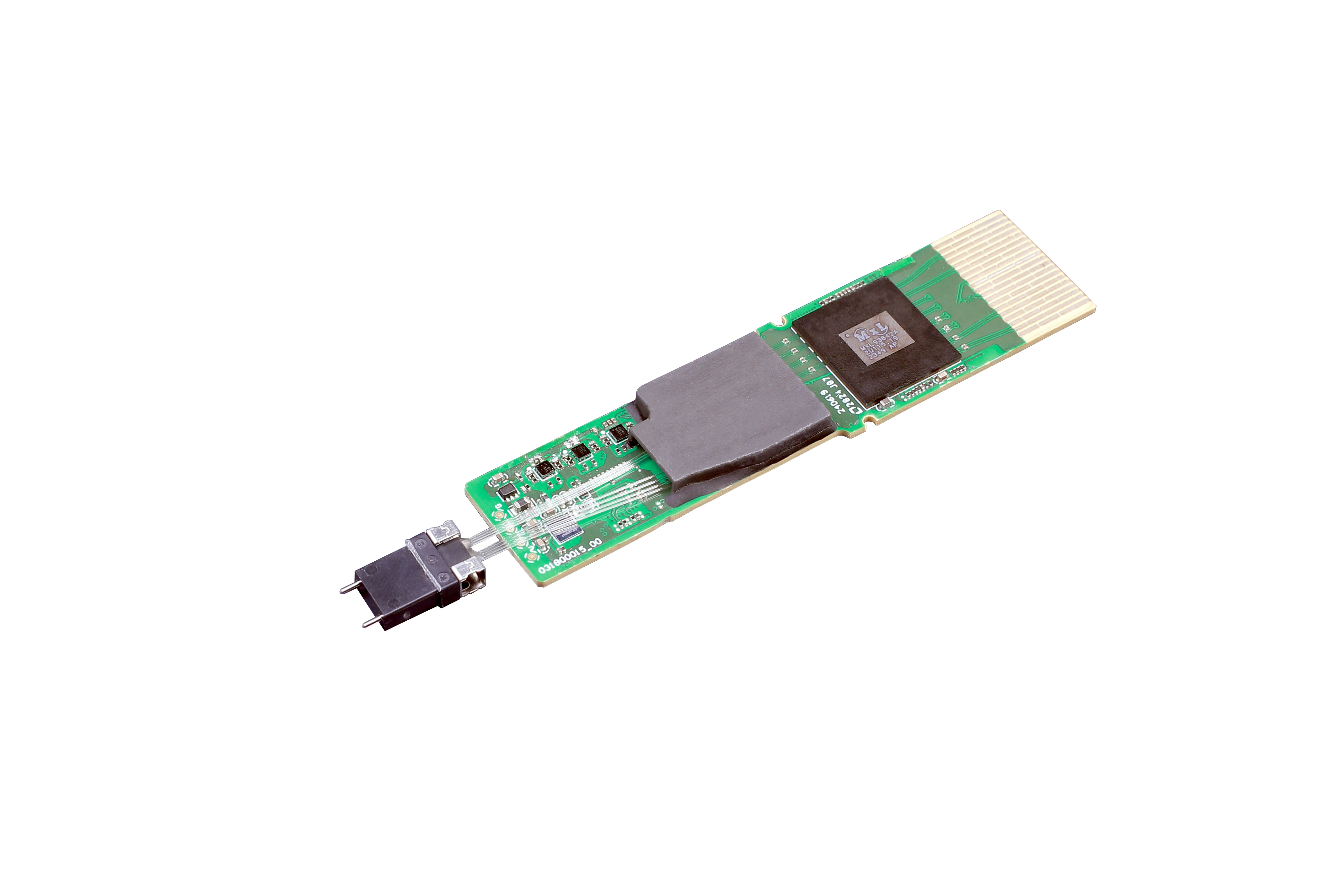 400G DR4 光引擎采用QSFP-DD封装,支持500m传输距离。光引擎中集成了1颗硅光芯片和1颗CW激光器,硅光芯片将入射光分为4路,每个通道的调制速率达到53GBaud,产品支持4x100Gbps数据传输,发射端TDECQ<1.5dB,接收端灵敏度<-8dBm(BER 2E-4),产品光接口为MPO 12/APC。