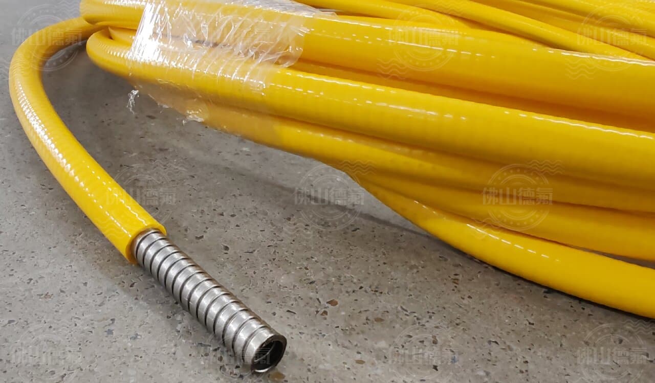 Coated interlock tubing, can be direct coated or coated after the s.s. wire braiding. Large bend radius, high tensile strength. Size 8*13mm and 7*10.5 are available. According to the lab testing, the tensile strength of the wire braided tubing is much higher then that without braiding, the movment fatigue also 3-5 times than that without braiding. TPU Coated can be used from -40℃ to 120℃